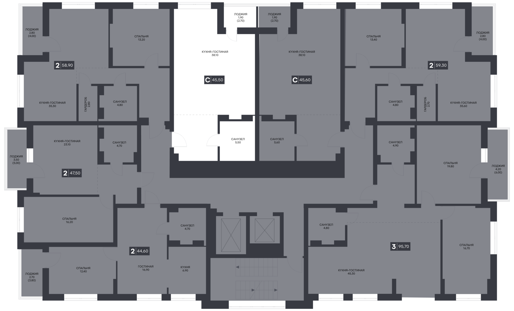 Общая площадь: 45.50 м²